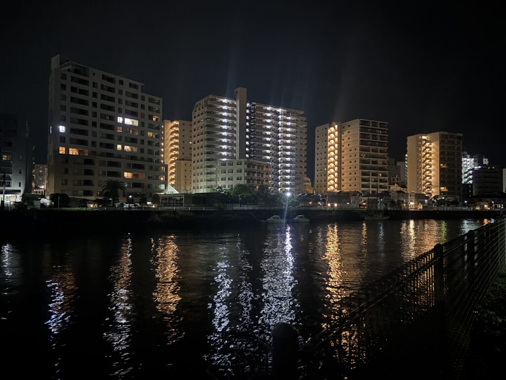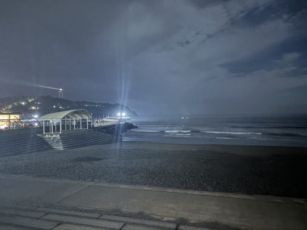 灯台を見たことがないわけではないのですが、実際に光っている様子を見るのは何気に初めてでした。そこそこ距離はあるのにかなりの明るさがあります。そして灯台が見えるということは、海が近いということです。