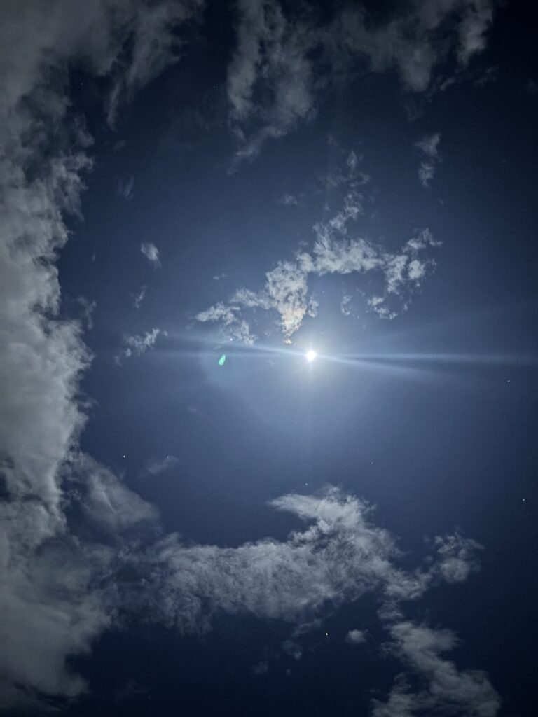 天気が良く、月や星がめちゃくちゃ綺麗に見えます。この時の気温は13℃ほどでしたが、海風の影響もあって体感温度が低く、めちゃくちゃ寒かったです。