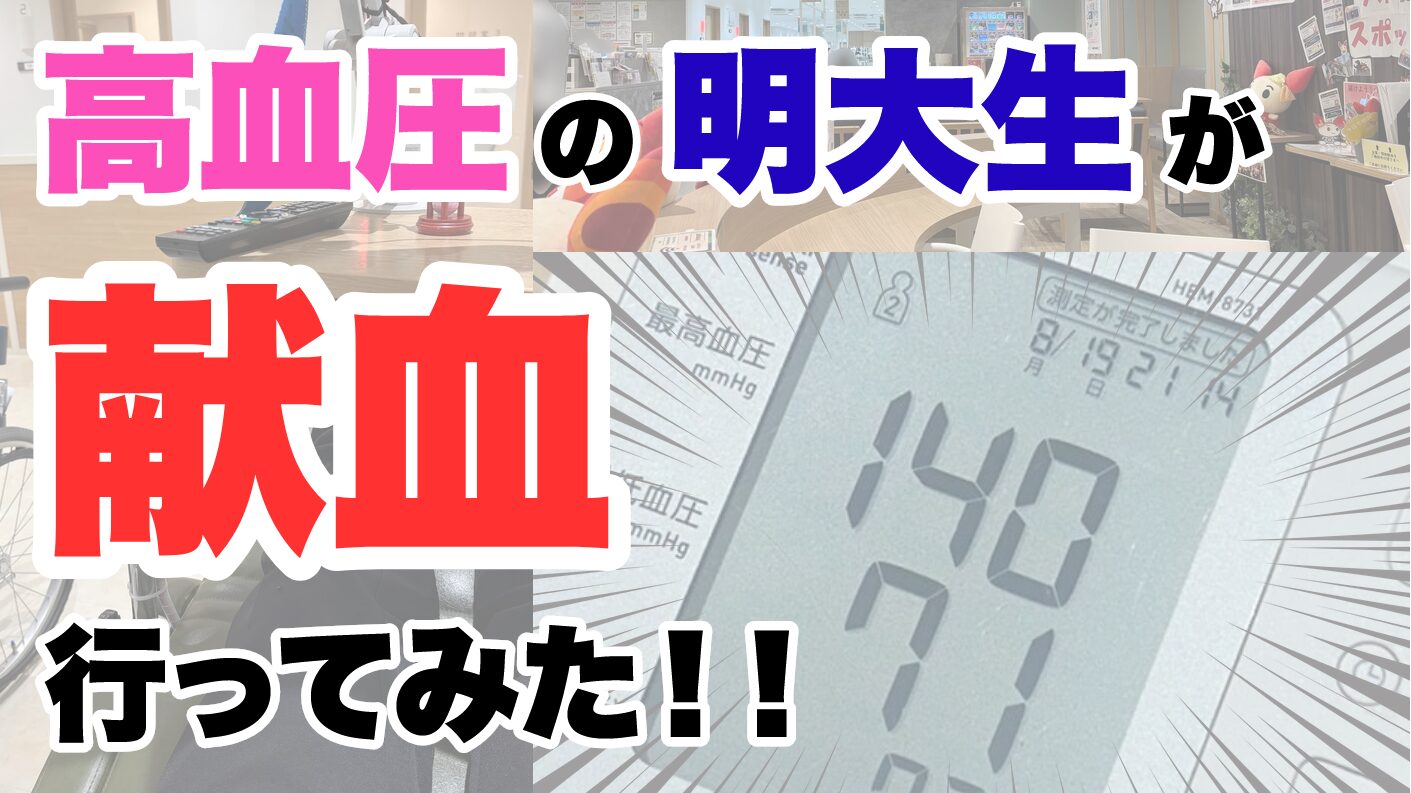 献血に行く1週間ほど前に行った温泉でノリで血圧を測ったところ、まさかのバチクソ高血圧。「130超えたら血圧高め」という某お茶のCMが頭をよぎります。