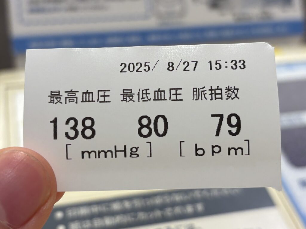 うーん酷い。前に測ったときから変わってないですね。献血をする条件の範囲(最高血圧90mmHg~180mmHg)には収まっているので問題ないはずなのですが、やはり心配です。