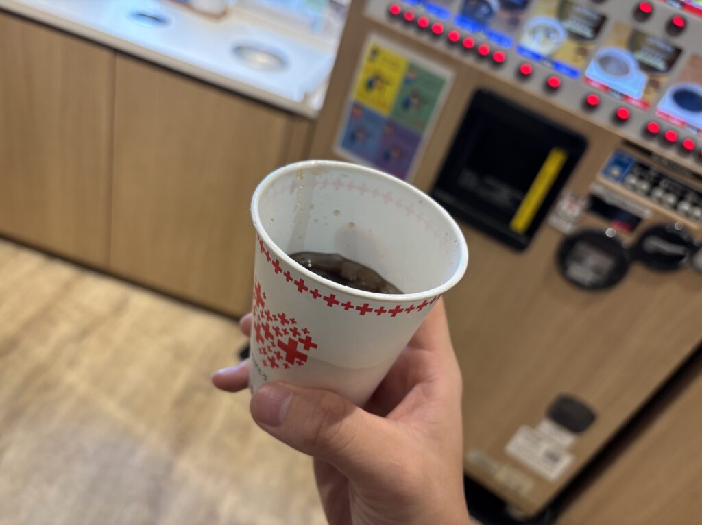 手続きを済ませたら、飲み物を飲みます。